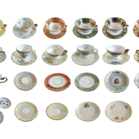 Fajance, testel, vintage, Søde vintage kopper med underkopper og kagetallernener. 3 sæt i alt.