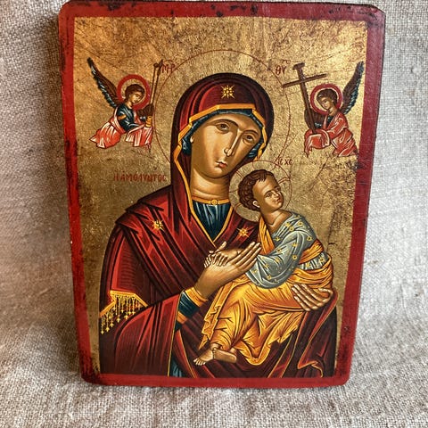 Ikon, Religiøst lille gammelt ikon af Maria med Jesusbarn. Mål 19,5 x 13,5.