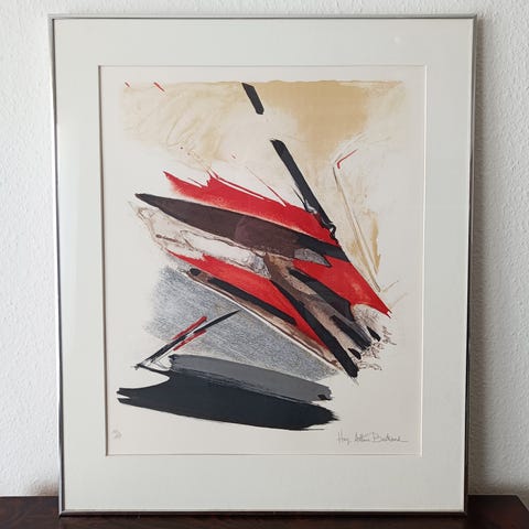 Litografj, Huguette Arthur Bertrand, motiv: Abstrakt , b: 60 cm h: 73 5, Non- figurativ fransk kunstner (1922-2005) signeret nr.19 af120 i smuk ramme med paspatu