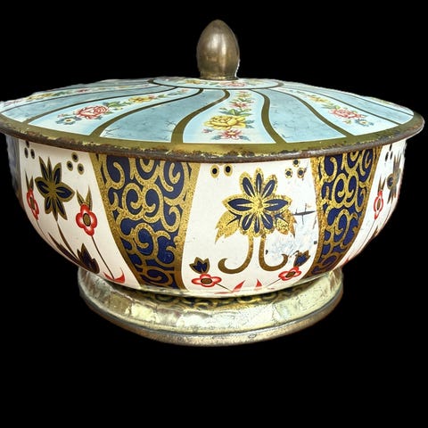 Antikke genstande, Krystal, messing, sølvplet, fajance.