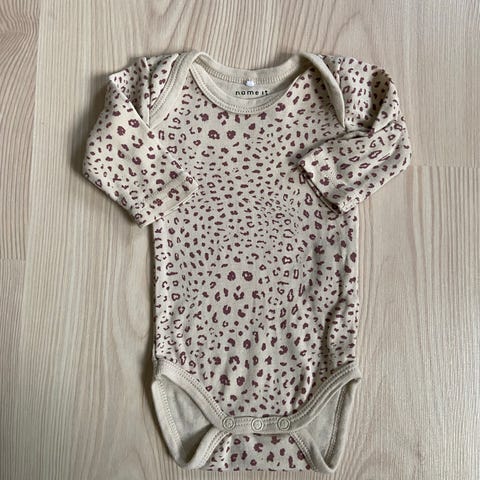 Skønt sæt fra Name it med langærmet body og bukser/leggings i lys lilla. Som nyt. Str. 62.