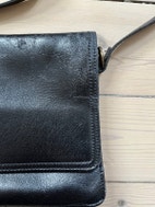 Crossbody, andet mærke, skind, Sort vintage skindtaske af ukendt mærke med justerbar rem.