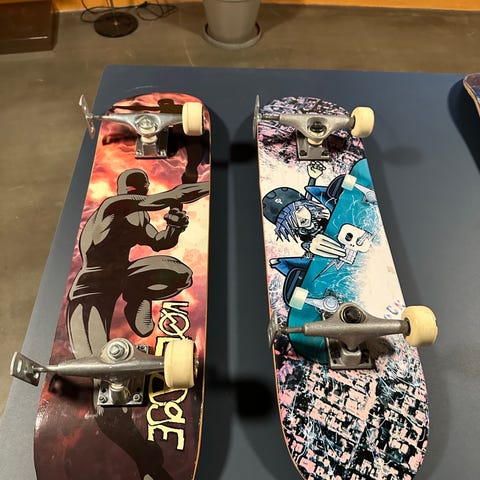 Blandet legetøj, Taske, skateboard, nøglering mm, Blandet, Børnene sælger ud, byd på det enkelte el det hele. Sender m gls