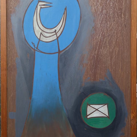 Oliemaleri, Gunnar Saietz, motiv: Abstrakt, b: 130 h: 98, “Samson og Dalia” fra 1990