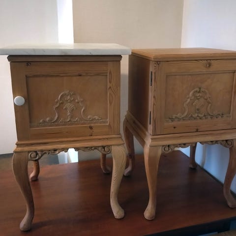 Sengebord, Retro Natbord, Antik Lampebord, Sidebord, Skab, Marmorbord