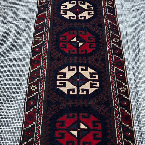 Løber, ægte tæppe, 100 % uld, b: 88 l: 338, Bud modtages på denne antikke uld runner :)