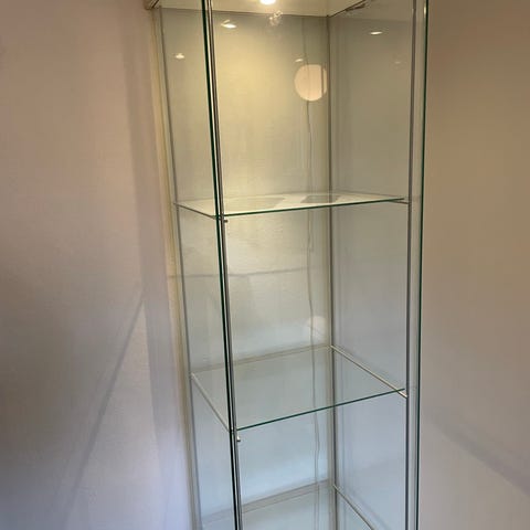 Vitrineskab, b: 50 d: 50 h: 200, Flot og velholdt glasskab…står faktisk som nyt !!