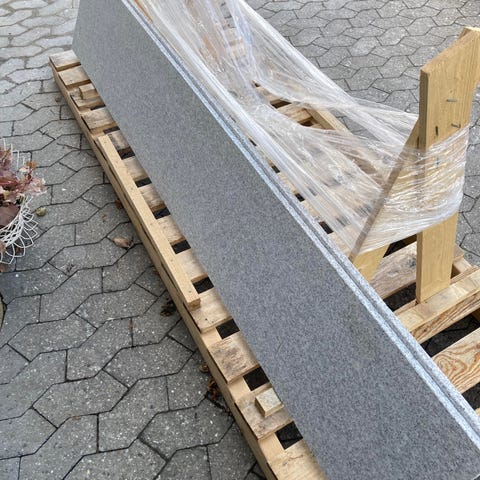 Granitfliser, Nye granitfliser, mørk grå/meleret. Poleret opbevaret udenfor, men har aldrig været lagt.
