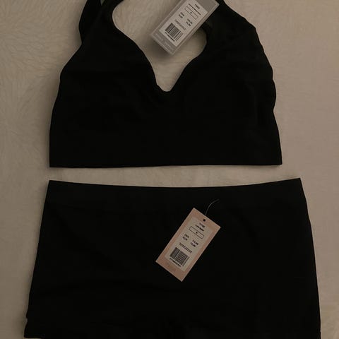 Andet, Missya, str. 36, Sort med smal stribe og blonde foroven og forneden, 90polyamid5elastan5polyester, Ubrugt, Str 75c
