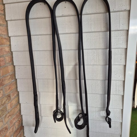 Køresele, 2. Spands køreseler til pony. Flere størrelser. Bringmål midt spænde til midt spænde 119 cm. Eller 109 cm: eller 100 cm eller 90 cm. Eller 80 cm. Nye brun eller sort, med skagler, liner, kobel, hovedtøj.
