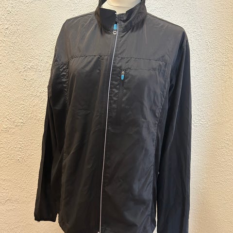 Jakke, str. L, Retro trænings jakke. Med lille Dannebrog på det ene ærme og to lommer i siden med lynlås samt en brystlomme også med lynlås.