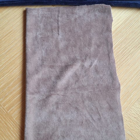 STOF. Stort stykke flot dybrød frotté med løkker på den ene side. Blødt og lækkert. Elastisk, egnet til f. eks. bluser og nattøj. Bredde 2 meter. Længde 170cm. Fejl i vævningen i form af enkelte striber i øverste kant (går ca. 15cm ned) og et klippet hul går ca. 22cm ned. Vejer 875g.
