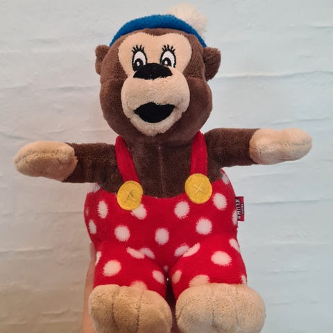 Rasmus Klump bamse, Petzi, Helt ny Rasmus Klump bamse på 27 cm. Købt for 149,95 i Børnenes boghandel.