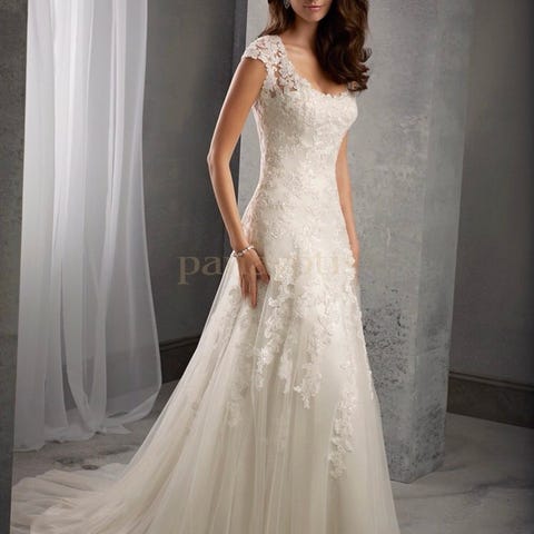 Brudekjole, MLM Label, str. 38, Silke, Ubrugt, Meget smuk og enkel brudekjole med 20 cm slæb str. M/L - lidt lille i størrelsen.