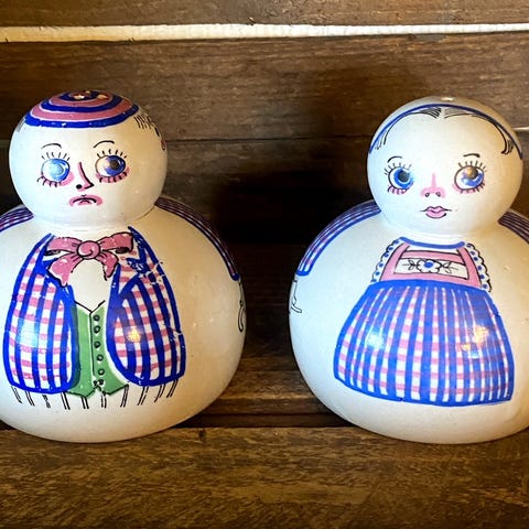 Kvinde med ræv: 46 cm, mand med fugl: 42,5 cm.