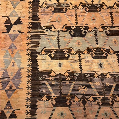 Løse tæpper, KELIM, b: 165 l: 240, Træd ind i en tidslomme af historie og elegance med dette imponerende tæppe fra Denizli, Tyrkiet. Dette mesterværk måler 240 x 165 cm og har en alder på 100 til 120 år, hvilket gør det til en enestående kulturskat fra fortiden.
