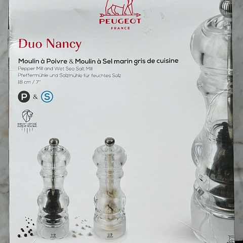 Salt/peber og krydderikværne, Pythia, Sælger dette smukke sæt med kværne til salt, peber og krydderier, som aldrig har været pakket ud og brugt. Designet af Nicolas Nicolaou.