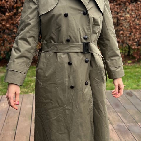 Trenchcoat, str. L, Monsieur, Grøn, 65% Polyester/35% Bomuld, Næsten som ny, Let overgangs frakke str. 54, kun brugt 2 gange.