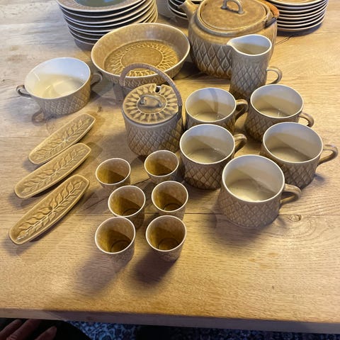 Stentøj, Testel, Håndmalet testel. Som ny. 6 stk kopper og sukkerskål.