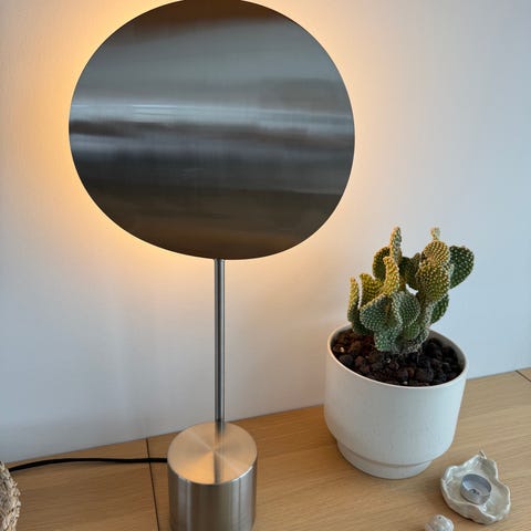 Anden bordlampe, Bolia, Lampe med rund marmorplade og messingholder. I fin stand.