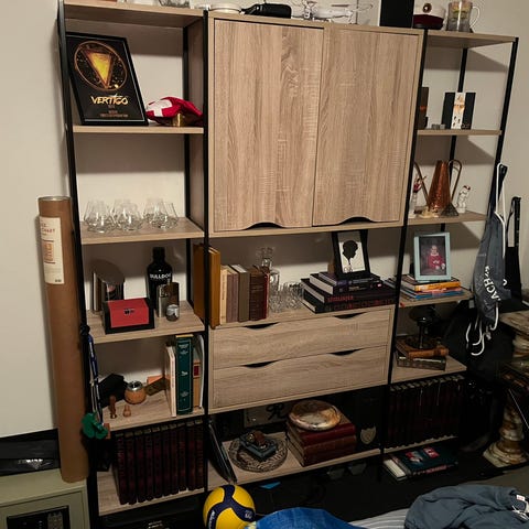 Reol, Andet, b: 185 d: 39 h: 185, Reol i super stand sælges for 1200kr med 13 sorte tilbehør. Reolen er fra et ikke ryger hjem.
