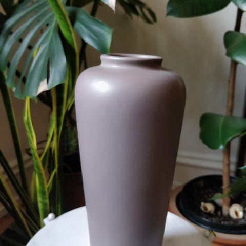 Brun og beige , rillet overflade, fin stand ingen afslag eller andet , højde 16 cm diameter bredeste sted 10 cm