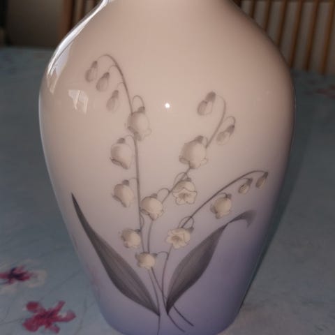 B og G. BogG. Kunstvase. Porcelænsvase. Blomster. Blomstervase. Kunst. Design. Retro. Vintage. Antik. Gammel. Kongelig. Kongelig vase. Første sortering. Bing & Grøndahl. B&G. Convalla. Lilje.