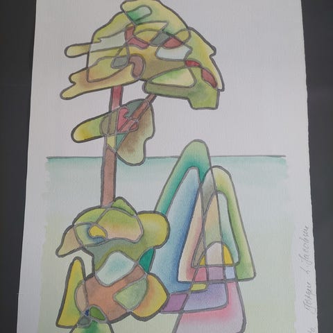 Akvarel, LJ, motiv: Drage, b: 51,5 h: 71,5, Uden ramme 350 kr. Indrammet 650 kr. De angivne mål er på rammen. Det er en egetræsramme. Kan afhentes i Farum.