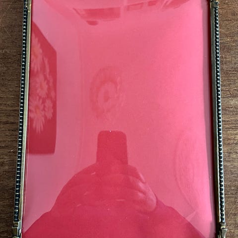 Gammel billedramme, Messing, Super fin gammel messing ramme med fod og buet glas.