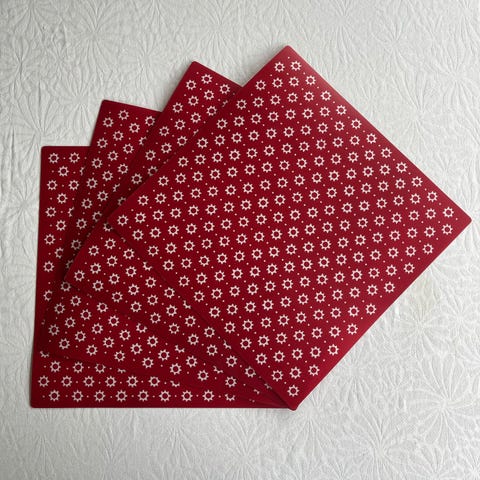 Dækservietter, Sælger disse dækservietter fra Jysk. Nogle er brugt mere end andre, der er derfor enkelte pletter på nogle af dem, hvilket kan vaskes af. Sælger 10 stk. og sælger KUN samlet. Kan afhentes i Valby. 70kr for alle ti stk.