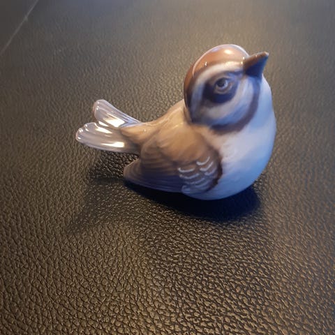 Fugl, Dahl Jensen, Dahl Jensen 1239 mini fuglekonge 1 sort. 4,5 cm høj 7,5 cm lang uden skår og afslag