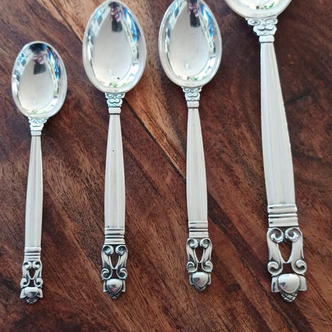 Sølvtøj, Konge, Georg Jensen kongebestik af Sterling sølv design af Johan Rohde.