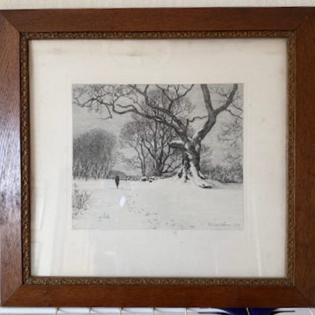Radering af Adolph Larsen (1856-1942), 1927, 17 x 27,7 cm.