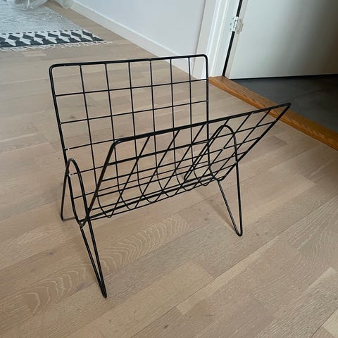 Billede 1: Rack magasinholder fra House Doctor i sort jern. 70x5cm Højde: 30cm. 400kr.