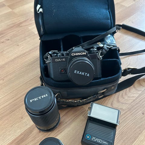Kameraet er i okay stand. Testet med batterier, lukker, fokus mm. Ej testet med film.
