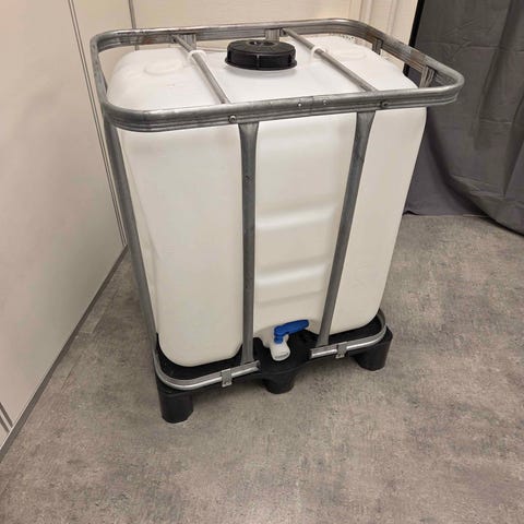 Sort palletank, Absolut fin og tæt sort palletank er FDA og UNC godkendt. 1000 ltr på stålpalle måler 120x100 højde 115cm. Med 2" aftspningshane. Adapter til vandslange kan tilkøbes til kostpris 195. Levering tilbydes mod mibdre betaling. Nypris 3295.