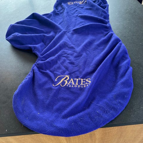sort sadelovertræk til en hest trænger til en vask, da det har lagt ude