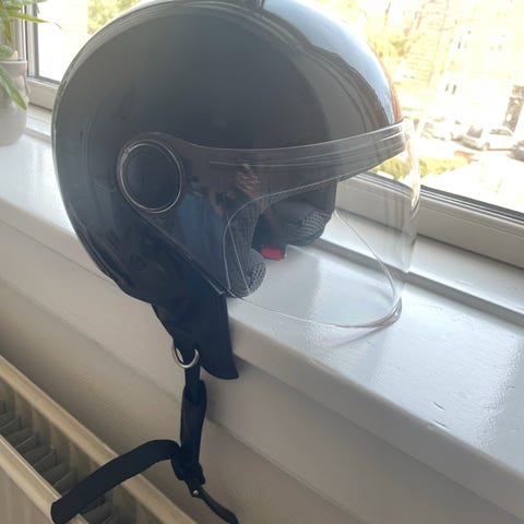 Hjelm, MT Helmets, str. XS - svarer til S, Sort/rød, lettere brugt hjelm til MC og/eller knallert, har lette brugstegn. Hjelmen er monteret med spejlvisir og det klare visir følger med. Ligeledes følger original stofpose med.