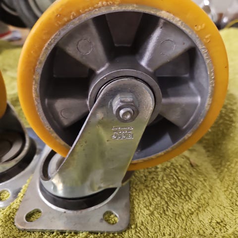 Mangler 2 stk hjul af denne type til et Trans Lyft bord. Der mangler belægnin...