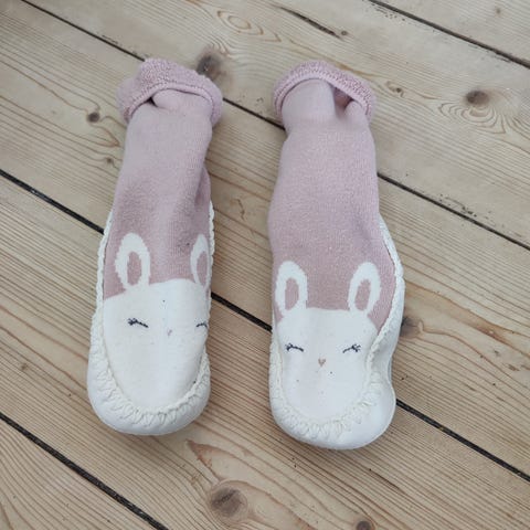 Hjemmesko fra Navnesko i str. 12-18 måneder svarende til ca. 13,5 cm. OBS - der er indgraveret “ JENS “ på skoene.