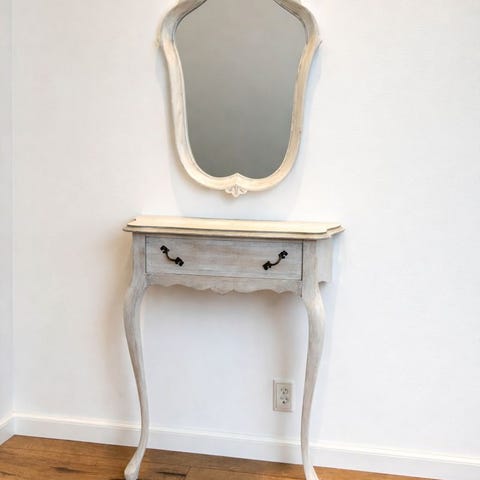 Gammelt sybord med flot hårdt træ bordplade.ny malet og lakeret kan anvendes mange steder i entren i stuen - butikken eller som have udestue bord dekorativt