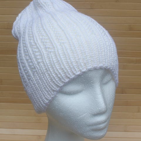 Uld strik, lune huer til forskellige hoved-omfang og længde a la baggies med rullekant.