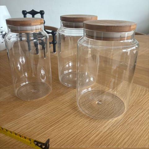 Glas, Krukke - opbevarings, Opbevaringskrukke, som er unik pga. dens rigtig fine form!