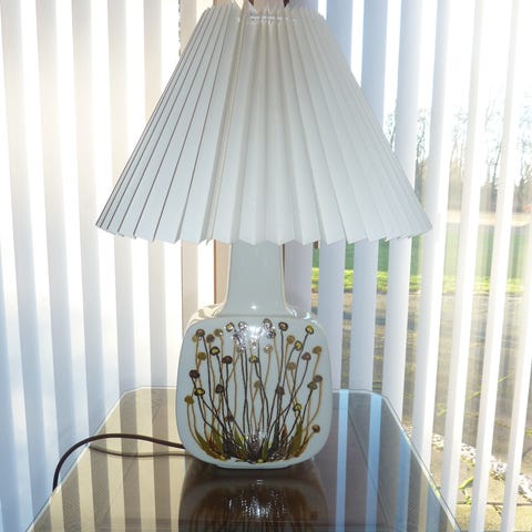 Lampe, Royal Copenhagen, Hvid bordlampe i porcelæn (vistnok) designet af Ellen Malmer og produceret hos Royal Copenhagen (fremstillet i perioden 1985-1991). Højde inklusive fatning: 32,5 cm. Diameter: 9,5 cm. Fremstår i pæn stand.