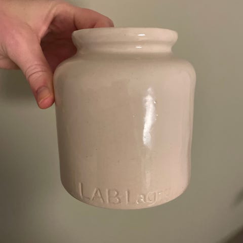 Vintage - Stor flot fransk sennepskrukke - Montarde de Dijon - højde uden korkprop 12 cm - diameter top 7 cm - bund 10 cm. I hel og fin stand. Kan afhentes 8381 Tilst eller sendes + forsendelsesomkostninger.