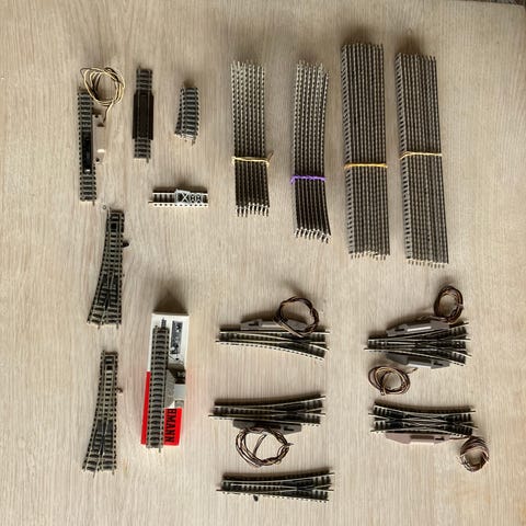 Modelbane, Fleischmann Alt mellem himmel og jord, skala H0, Masser af Fleischmann modeltog udstyr. Skinner i mange varianter. Liste kan leveres. Fotos af alt. Brugt. 3 lange passager vogne, originale bil-vogne, 3 kørende toge, MY skal have nyt kul, 3 defekte toge følger med, diverse godsvogne