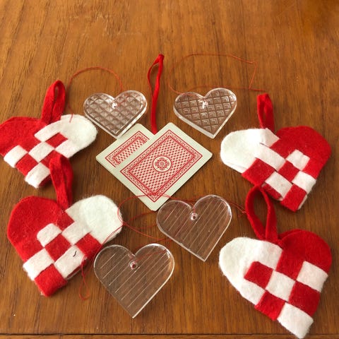 Hjerter, 8 flotte store hjerter - brugt en enkelt dag til pynt til bryllup. Fast stålhjerte beklædt med groft sejlgarn. Måler 34 cm tværs over.