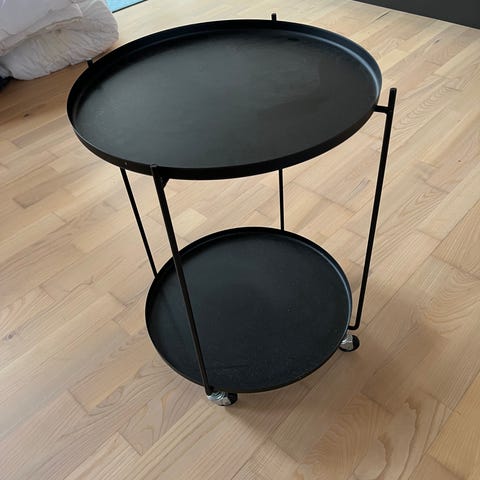 Bakkebord, Openmind, Bakkebord i sort metal med aftagelig, rund bakke. Højde 47,5 cm og diameter 39 cm. OPENMIND Stella bakkebord.