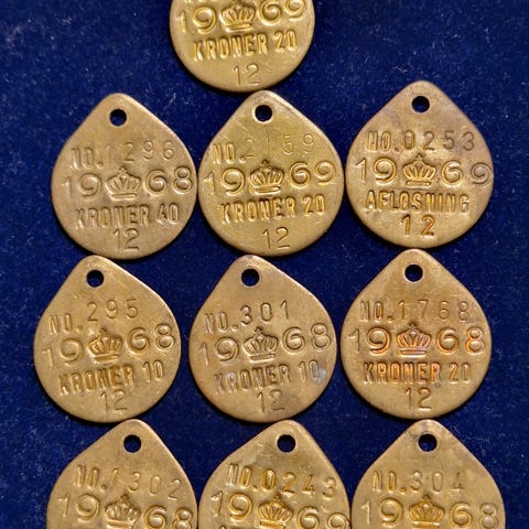 Plads til hundens navn, ejers navn og telefonnummer.