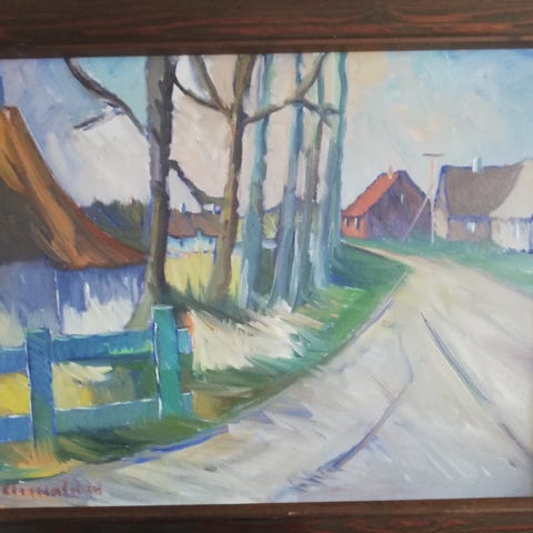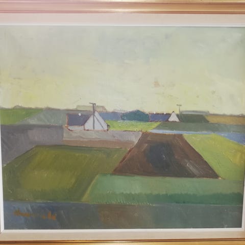 Akrylmaleri, Arnold William Pedersen, motiv: Landskab, stil: Modernisme, b: 100 h: 69, Akrylmaleri af Arnold William Pedersen ( 1912 - 1986 ) maler.